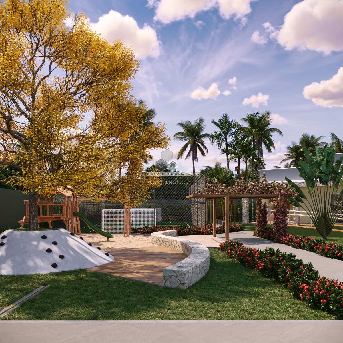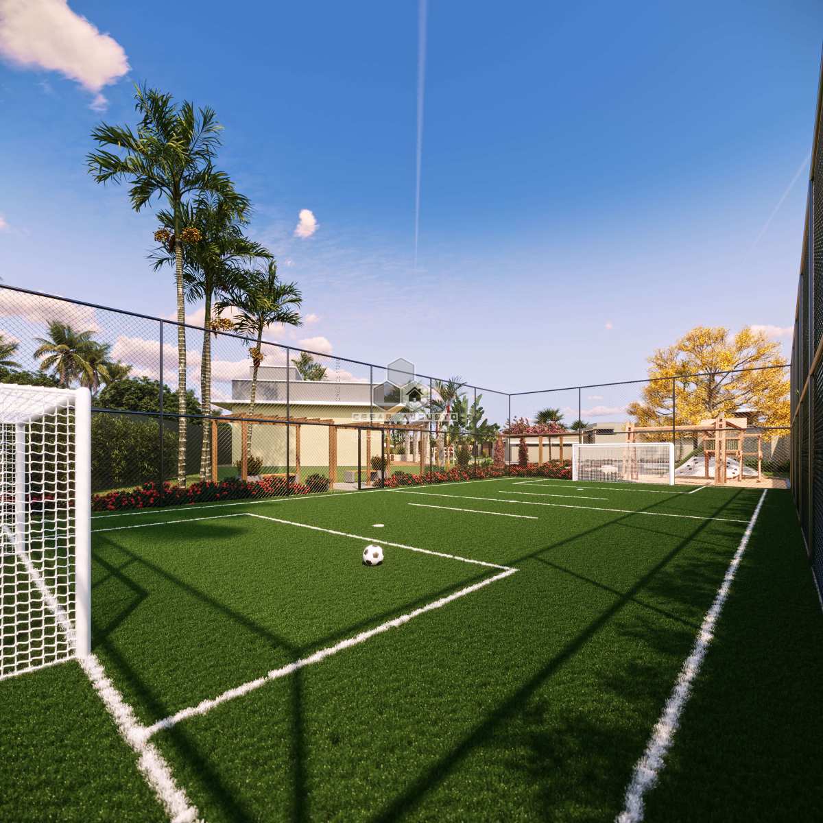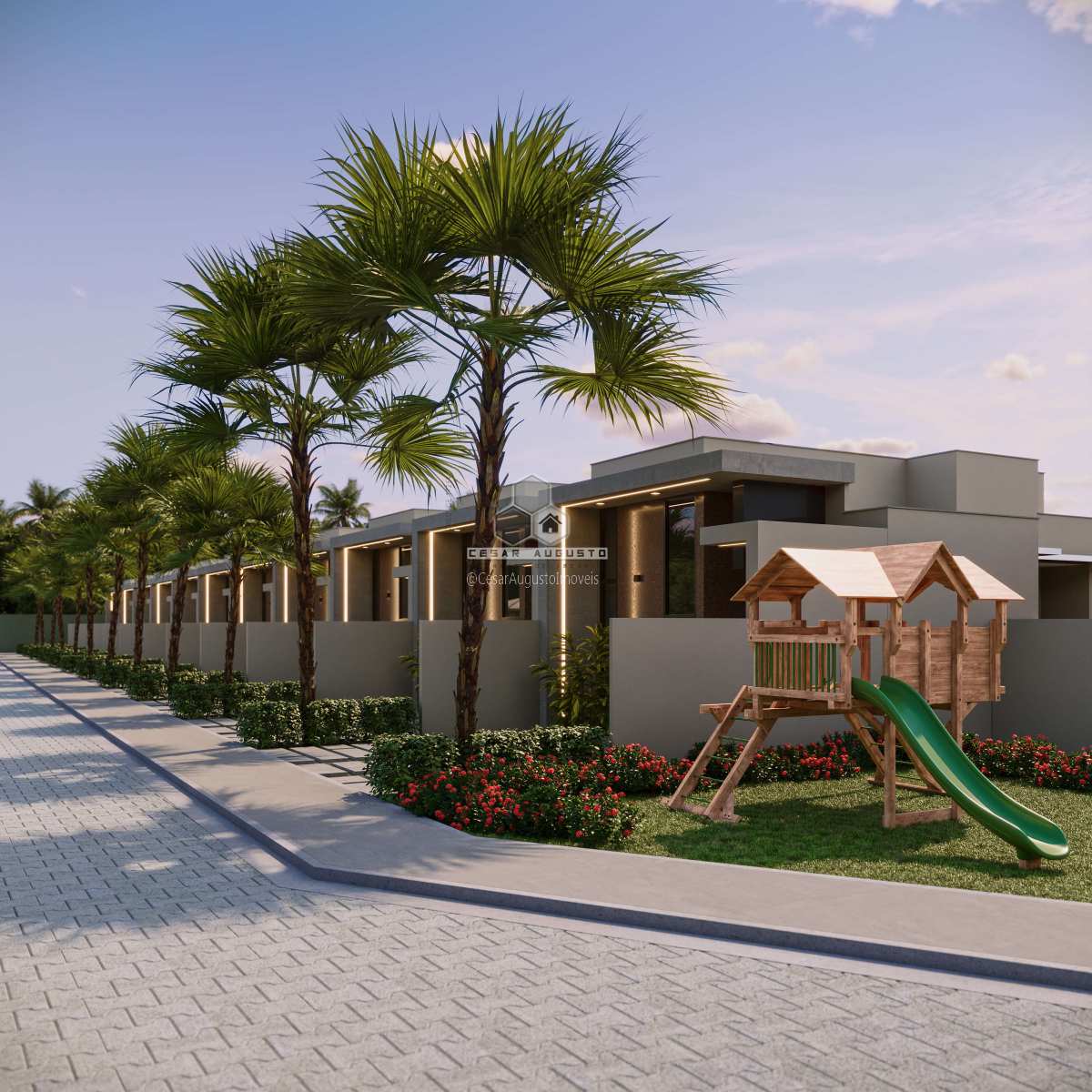 Além disso, o projeto inclui soluções sustentáveis, como pavimentação ecológica, drenagem pluvial eficiente e amplas áreas verdes.